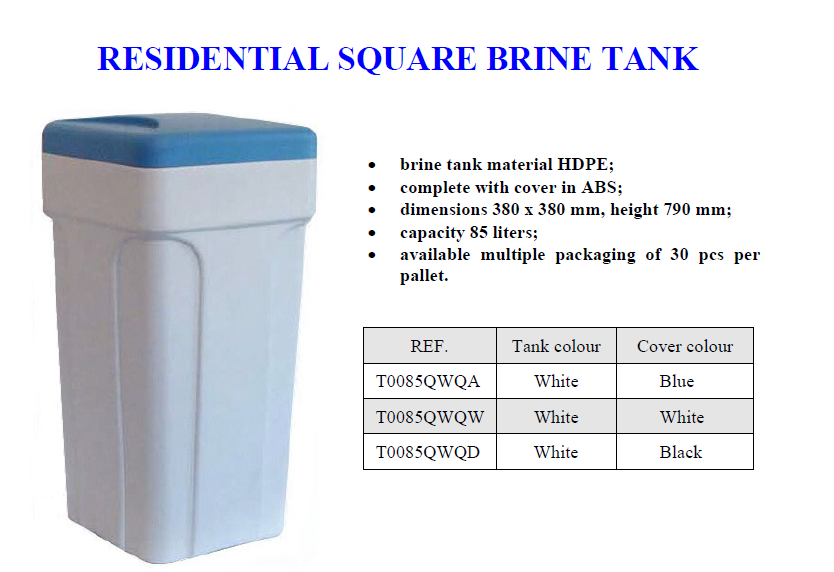 We also have 85 Liters brine tanks for small softeners , from Eurotrol – Italy Square Type